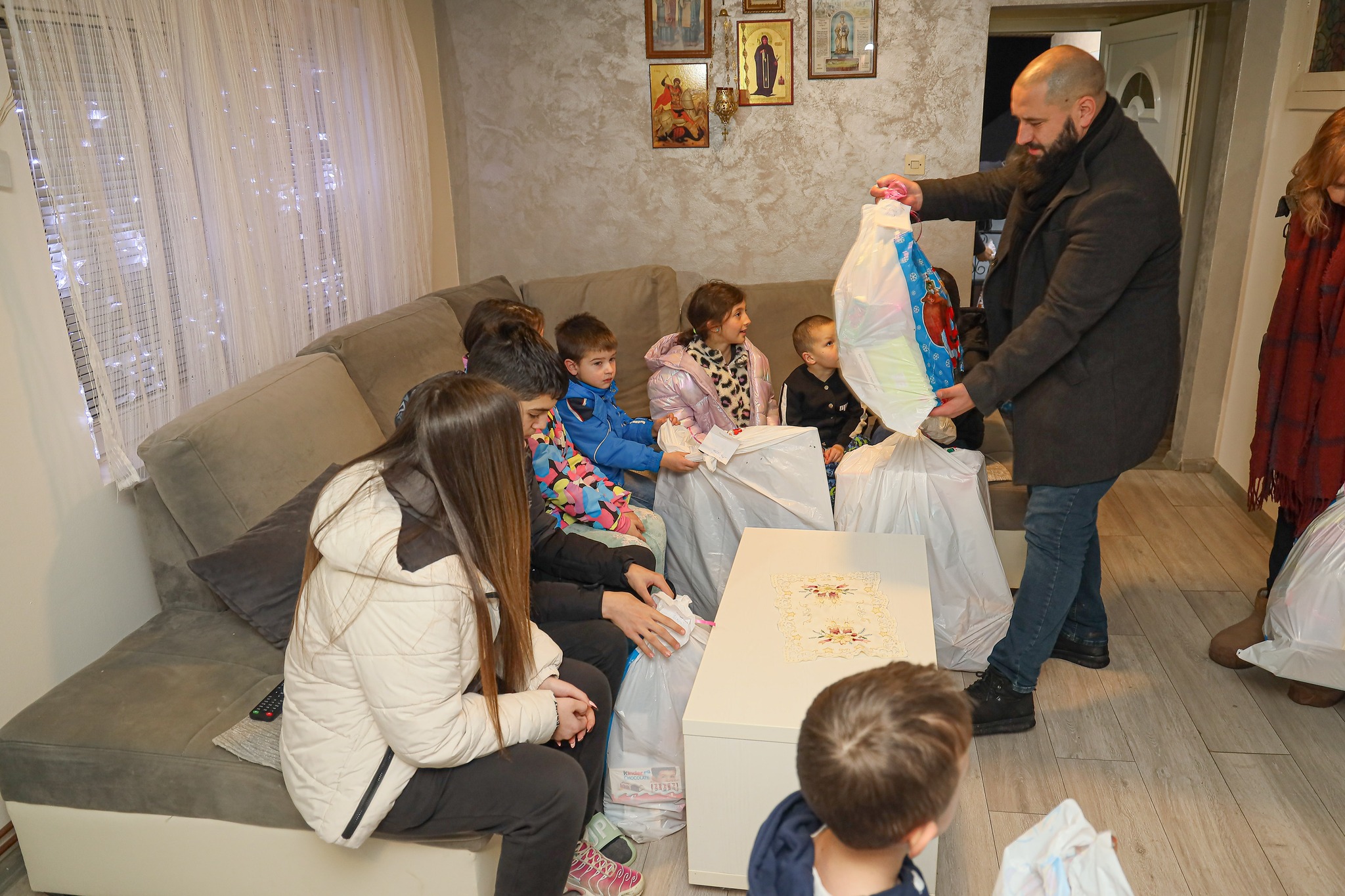 Domaćin Dragan Bošković zahvalio se na prilici da bude domaćin i svim sugrađanima čestitao Badnji dan i Božić, a predstavnici grada su deci iz porodica Bošković, Milošević, Nešković, Panić i Slović uručili prigodne novogodišnje paketiće.
